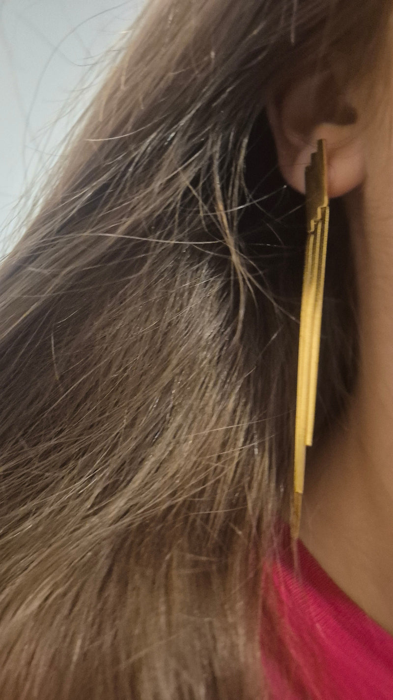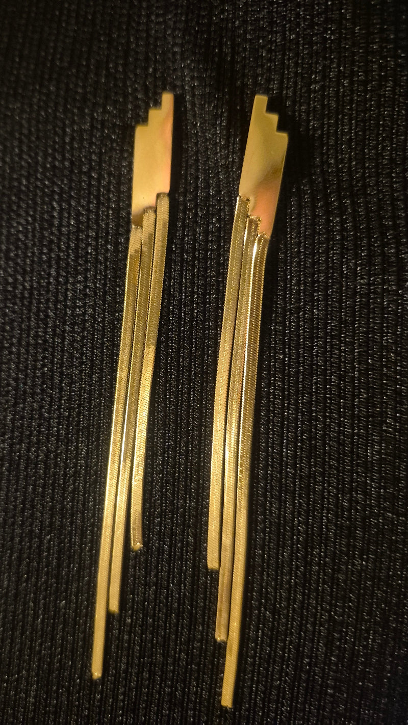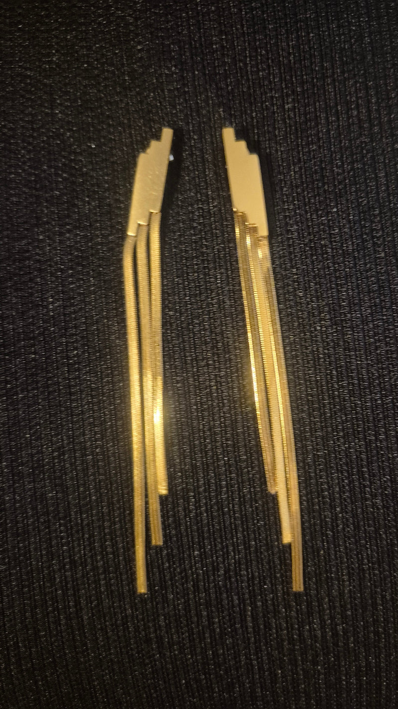 Drei filigran hängende Kunststreifen sorgen für eine dynamische Bewegung und ein edles Erscheinungsbild. Der kunstvoll gestaltete, verbindende Teil am Ohr rundet das Design harmonisch ab und schafft eine optische Schönheit, die sofort ins Auge fällt. Glamour pur – modern, ausdrucksstark und stilvoll.